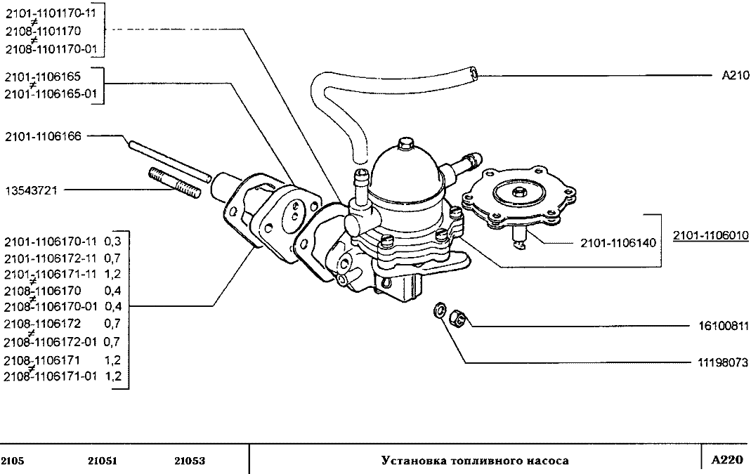 | NNM | 2101-1106165 |  | Толкатель бензонасоса ВАЗ 2101 в сборе (2101-1106165/66/67) | Используется в: ВАЗ-2101, ВАЗ-2102, ВАЗ-2103, ВАЗ-2104, ВАЗ-2105, ВАЗ-2106, ВАЗ-2107, ВАЗ-2108, ВАЗ-21083, ВАЗ-2109, ВАЗ-21093, ВАЗ-21099, ВАЗ-2110, ВАЗ-2121, ВАЗ-21213, ВАЗ-2131